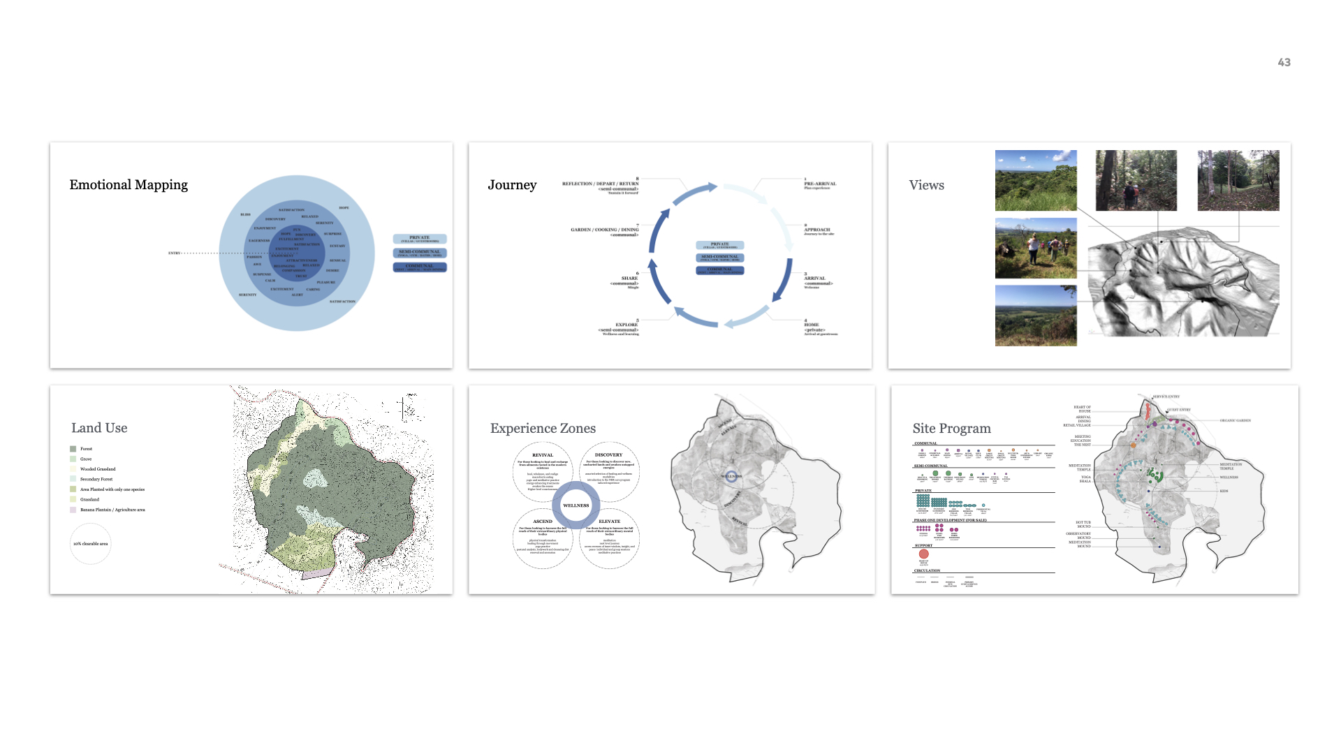 New Earth is a resort concept focused on health, yoga, and education, and envisioned for a mountainside site in Costa Rica. The design seeks to embody the ideas of healing and mindfulness by balancing private, introspective spaces with community areas and treatment facilities.